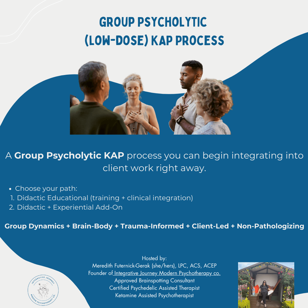 This group process introduces concepts to engage in Group Psycholytic Ketamine-Assisted Psychotherapy (KAP).